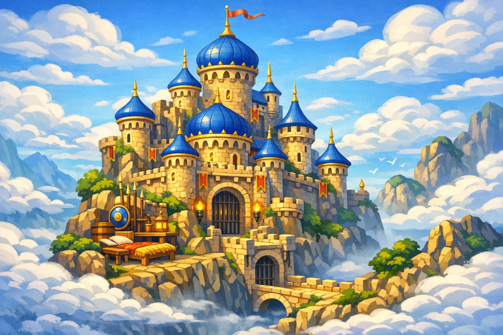 Zirvedeki saray bölümlerinin çizgi film estetiğini andırması